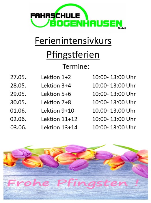 In fast allen Schulferien bieten wir einen Intensivkurs an: alle 14 Lektionen werden an 7 Tagen behandelt, danach seid ihr fit für die Theorieprüfung!