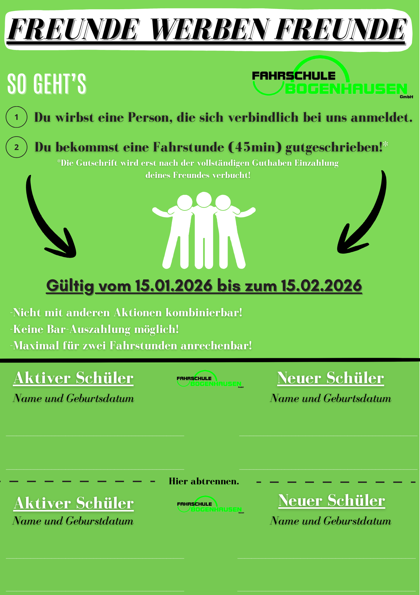 Habt ihr schon einen Führerschein der Klasse B reduziert sich der Grundstoff auf 6 Lektionen plus den klassenspezifischen Stoff.